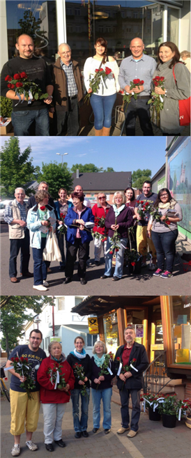 Dieser Mai hat neben Christi Himmelfahrt, Muttertag und Maifeiertag noch ganz spezielle Termine: einen Wahlsonntag und einen Auszählmontag. Grund genug für die 11 Frauen und 11 Männer auf der SPD-Liste, außerdem noch einen Rosensamstag einzuschieben. Vor den Bäckereien Fell, Ebner und Rothermel sowie vorm Wasgau-Markt wurden Rosen an die Bürgerinnen und Bürger verteilt.